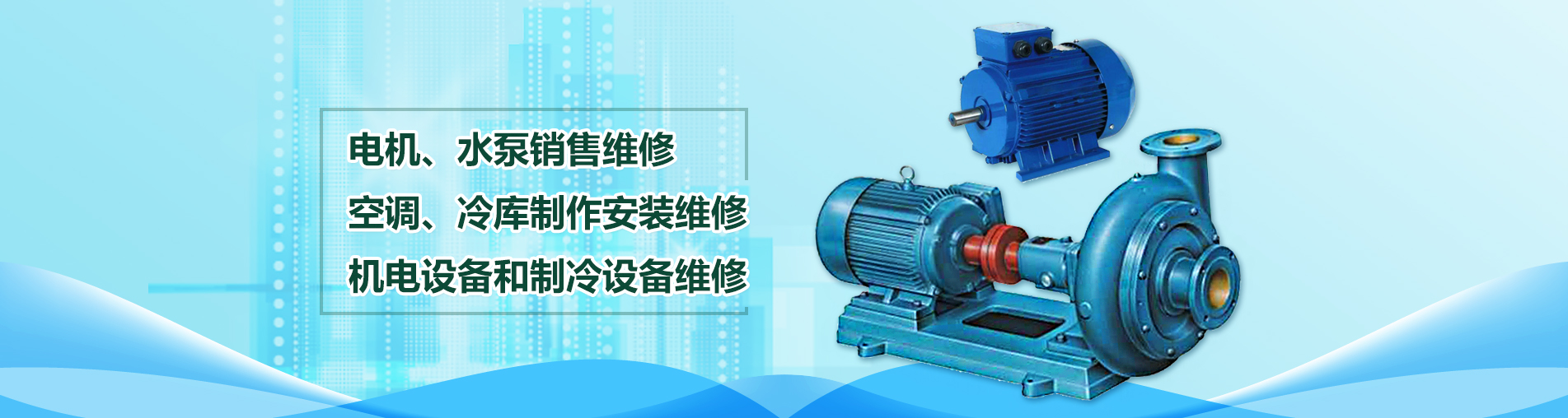 關(guān)鍵詞: 機(jī)電設(shè)備和制冷設(shè)備維修 空調(diào).冷庫(kù)制作安裝維修 電機(jī).水泵銷售維修